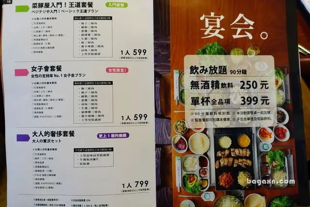 飲品有無酒精及酒精,也有喝到飽的方案,詳細價格可以見第三張菜單。