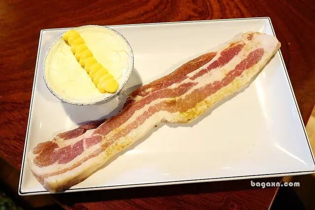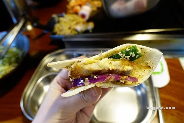 起司三層肉搭配墨西哥捲餅皮吃起來口感較差紮實,但因為加入脆口的小黃瓜及洋蔥,使得口感豐富又不膩口。