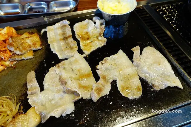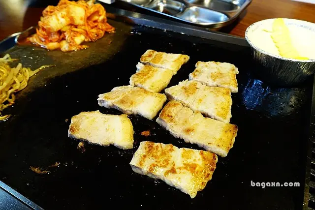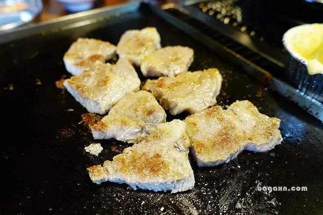 三層肉煎烤至表面金黃就差不多熟了,如果不知道熟度也可以隨時詢問。