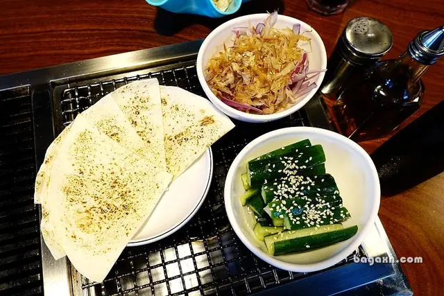 套餐內另外還有包含3種推薦配菜,這天提供的是酸甜小黃瓜、和風柴魚洋蔥、墨西哥捲餅皮。這些吃完如果還想再吃需要另外加點喔!
