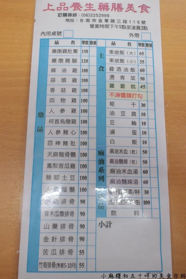 位在金華路 & 府前路口的這間上品這附近可是宵夜的一級戰區,秋冬的夜晚想喝熱湯,上品倒是個很好的選擇店裡燉湯都是老闆每日燉煮的個人最喜歡的還是燉湯,這裡光是燉湯就有超過20種可以選擇也有賣其他主食類,飯、麵線....等用餐環境裡面有電視、有冷氣就算夏天來喝燉湯也不會滿身汗冬天的夜晚更是適合來碗燉湯暖暖身子悠閒地喝個湯、看個電視,就像在家一樣輕鬆不一樣的是不用自己動手就能享用料好實在的燉湯今天點的是人蔘雞 $100從底部撈起來會看見店家用料的實在一整根的雞腿燉出一碗湯雞肉整個燉到很軟嫩,筷子輕輕一剝骨肉分離還有那滿滿的藥材食材細細品嘗一口,人蔘味道非常的濃郁麻油雞 $100麻油的香氣也非常到位這是蝦米很常來,很喜歡的一間店半夜想喝熱熱的湯,推薦可以來這邊吃吃看喔價目表請以店家現場最新資訊為準食記為主觀意見,口味、感受因人而異,不保證好吃與否,消費前請另外參閱其他網路資訊照片、文字數量與推薦程度沒有正相關,僅供參考文章之留言管理者保留刪除之權利,謝謝…查看更多