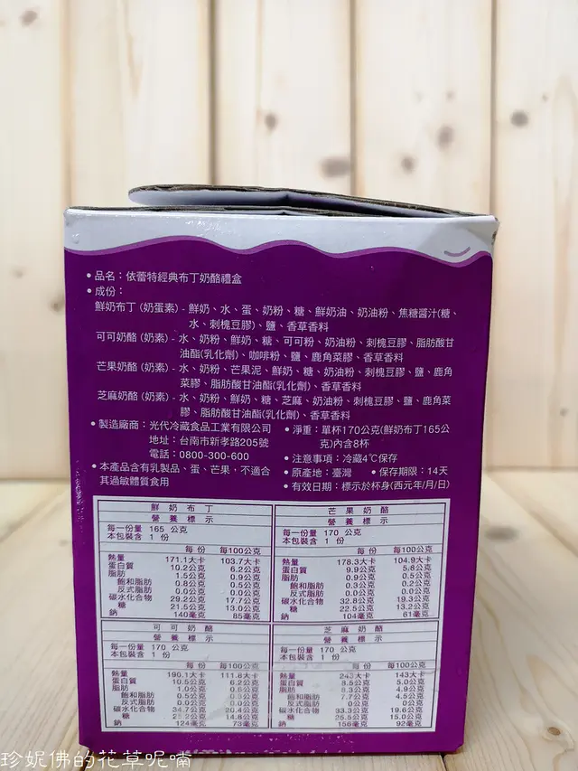 依蕾特布丁評價推薦依蕾特x711期間限定推出的冬季限定禮盒設計很有秋冬感,因此也很適合作為聖誕禮盒或是聖誕節交換禮物~鮮奶布丁說到台南名產,依蕾特可以說是台南布丁的代名詞,熱銷超過20年的鮮奶布丁是依蕾特的招牌必吃,同時也是大家來台南必買的伴手禮。鮮奶布丁以光泉鮮奶及紐西蘭的全脂奶粉來製作,因此奶香特別濃郁且香醇,布丁口感滑嫩非常彈性,加上香甜的焦糖漿,讓人一口接著一口,是大人小孩都喜歡的下午茶點心。黃金芝麻奶酪奶酪也是使用光泉鮮奶及紐西蘭的全脂奶粉製作,為2022冬季新品的黃金芝麻奶酪選用頂級白芝麻與黑芝麻來入料,並以慢火焙煎保留芝麻的獨特香氣。單吃奶酪就可以享受到淡淡的芝麻香,而上頭的芝麻醬非常濃稠,芝麻香更是渾厚,香氣一整個超濃郁~只挖一口,上頭的芝麻醬直接像瀑布般的流下,實在太邪惡了!濃可可覆盆莓奶酪濃可可覆盆莓奶酪以雙倍可可來製作,因此可可香很是鮮明,同時有著微微的苦香,搭配上頭微酸微甜的覆盆莓醬而有著豐富香氣,苦甜之中帶點微酸的滋味,是一款非常冬季的甜點。覆盆莓醬厚厚一層,果香也很濃郁。說到小七美食,依蕾特也是榜上有名,不管是布丁還是奶酪,香氣都很濃郁,甜度也不會太高,其中黃金芝麻奶酪更是讓人感到驚艷,因為一切下,芝麻就直接流下,那畫面真的好療癒,而芝麻香氣也非常渾厚…查看更多