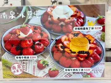 又到了一年一度的草莓季了,這次台南草莓冰要去哪裡吃呢?熱血搶先帶大家來去「南泉冰果室」吃吃這來苗栗大湖的草莓,這草莓10月底才剛剛出來,是南泉冰果室與苗栗大湖小農契作的草莓,也親自跑苗栗採收,品質上可以說是老闆掛保證的,而且今年的草莓甜度更勝以往,而且這裡還一次提供你三種不同口味的草莓冰給你,熱愛吃草莓冰只要來這裡準不會錯!南泉冰果室 位置南泉冰果室位於台南安平區安平路上,就在運河的正對面,地點相當好找,而且門口就可以停機車,開車來也有超多路邊停車可以停,相當方便。店內用餐空間非常寬敞舒服,也有冷氣開放!另外二樓還有超美的視角可以直接欣賞安平運河之美。南泉冰果室 菜單 menu南泉的冰品一年四季不盡相同,只有部分飲品會維持一直在菜單上,有時候太久沒來就會發現又有新的花樣出來,這也是來南泉冰果室的特色之一,而且他們家的冰不只好吃,拍起來更是畫面感超強!愛拍照打卡的你絕對不能錯過。草莓奶蓋布丁冰 $230之前就來這裡吃過奶蓋系列的冰品,吃了之後真心愛上!這次草莓冰當然也不能錯過,而且這次更浮誇,還直接在上面添加了一顆古早味布丁,整個草莓冰的畫面真的超逼人有沒有!南泉的奶蓋是芝士奶蓋,吃起來的口味更濃郁,口感帶點鹹鹹又甜甜的,搭配上古早味布丁一起吃更是奶味十足~女生朋友一定超愛!還有珍珠搭配著一起吃,實在是太幸福了~草莓湯圓 $180讓我們驚豔的還不只有剛剛那款,這個佈滿珍珠和小湯圓的草莓冰更猛!小湯圓超Q吃起來也好甜蜜,拍起來畫面性更是豐富,而這次的草莓大小適中,吃起來甜度也算高,如果有朋友怕酸,店家也會提供煉乳添加喔。我覺得這碗厲害的地方還有下方的自製草莓醬,讓你每一口都擁有十足的甜蜜幸福感。草莓牛奶冰 $200目測這碗草莓牛奶冰應該至少放了10顆完整的草莓,才賣這樣的價錢也算是很OK啦!而且下方也淋滿了自製的草莓醬,老實說他們家的草莓醬要不是因為沒有賣,我真的很想直接打包一罐回家配吐司!淋上煉乳之後的草莓更好吃了,酸酸又甜甜的風味更好,怕酸的朋友也不用擔心了,好好享受這一碗極致草莓冰吧^^台南草莓冰,熱血強烈推薦這間南泉冰果室給大家來品嘗看看,絕對值得讓你跑一趟!…查看更多