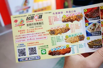 大又有料~創意無限的超大雞排!! 台灣楊雞 創意雞排(中山店)電話 06-2218157地址 台南市中西區中山路154號營業時間 下午2點~晚上11點南方公園對面這間光亮亮還挺顯眼的創意雞排..主打口味多樣 創意無上限 !!聚餐開趴不想出門的話~還有外送服務!!平日天天有的優惠活動!! 除了口味多多的超大雞排之外..這裡也有各種小點心炸物!!台灣楊雞主打 四種裹粉不同的雞排口感之外~還有10來種的口味可選..10來種口味還不夠多??當然~再來看看這裡還有多款特色雞排..醬燒碳烤..泰式..椒麻檸檬..椒麻鹽酥..厚脆無骨..和風日式口味..另外!!點了主餐還可以加價購小點心配飲料.一種吃賣噹噹點套餐的概念...算是很多樣化!!店家騎樓設有多張椅子..現點現炸馬上吃也不賴看這分享餐~也好適合聚餐的朋友來外帶!!脆麵超大排 ~真的超大還傳來陣陣炸香氣..跟咖搭車2人在人家手機店門口就狂嗑起來外皮麵脆帶著鹹香嚼著雞排的肉感~ 外帶朋友家聚餐開趴~也是花樣多到什麼都想來一椒麻檸檬香雞排 是我喜歡的其中一種口味脆波超大排的麵衣.. 灑上的配料很大氣...要吃的時候在淋上椒麻檸檬的的醬汁~ 吃的到雞排外皮的酥脆..蔥蒜配料和檸檬的酸香~泰式超大排 不一樣的麵衣裹粉 ~淋上類似泰式甜雞醬的微微酸香辣帶點甜味 2款截然不同的泰式風味~醬燒碳烤雞排 炭烤雞排~嚼著那個醬香甜鹹味和剛剛好的麵衣包裹的肉感~好吃不賴!!最重要他家的碳烤雞排不會太過甜膩!! 飲品 冬瓜檸檬炸物 點心也是一個琳瑯滿目 轉一轉 甜一甜泡個牛奶???的OREO餅乾~...既然也可以炸來吃!!酥脆的巧克力餅香~吃來甜香甜香的不錯ㄟ洋芋脆薯爆漿地瓜球和湯圓(花生口味) 包著內餡的Q彈口感~和軟香的花生湯圓完全不同口感 其實這間創意雞排~很多炸物點心((不想吃雞排的話也可以當作鹽酥雞般的點菜)) ~近年超厚雞排一間間開..這間創意口味多的雞排倒是提供了更豐富和多花樣的選擇也是很不賴呦!!…查看更多