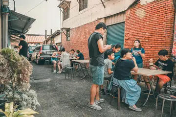 菁寮老街是個保留著過去純樸以及懷舊感的地方,即使隨著時代的變遷、新興大樓的崛起,這裡仍感受不到商業化的氣息,刻劃著歲月痕跡的老屋子依然存在著,時間彷彿在這裡被凝結了。老街因為最近戲劇俗女養成記的關係,又再度掀起大家對於追劇景點的狂熱,除了金德興中藥行之外,來到菁寮老街不能錯過的就是和興冰果部,這個傳遞了80幾年的老滋味,更傳遞了許多人的回憶。         和興冰果部就位在菁寮老街的一隅,小小的店裡擁有絡繹不絕的人潮,古早味的裝潢以及傳統的課桌椅到了現在看似樸實簡單,卻讓人難以想像在50年前,這裡是以前的人相親、約會、朋友聚會的地方。由於以前是個生活貧困又物資缺乏的年代,不像現在有各種異國料理的餐廳和漂亮咖啡廳可以選擇,能上冰果室吃碗冰就已經是個小確辛,而店門口的屏風是為了阻擋外頭的路人窺探裡面的情侶所設計的,覺得非常的貼心又充滿意義(笑)。    △ 青綠色的課桌椅完全將人帶入50年前的復古氛圍。   因為當天的天氣十分炎熱,許多人到老街都會來一碗冰,除了室內的座位之外、連外頭的座位也幾乎坐無缺席,讓我不禁好奇這碗冰到底有多大的魅力?   牆壁上掛著黑松汽水的價目表,彷彿是小時候才會看到的東西,雖然現在還是會看到保留黑松汽水價目表的店家,但已經非常少見了。仔細觀察每一樣冰品竟然都不超過50元,連價格都停留在過去的年代,對於身為台北人的我們來說,已經很久沒有看到這樣親民的價格了(笑)。    我們分別點了兩種不一樣的冰,一碗是花生牛奶冰,另一碗則是雞蛋牛奶冰,也就是所謂的「月見冰」,蛋黃是月亮、白色的冰則是天空,必須融合在一起才會有美妙的滋味,這麼有詩意的名字似乎都讓人感受到戀愛的氛圍。事實上,在以前要吃到雞蛋是一件不容易的事,所以發明月見冰的人突發奇想,將雞蛋打入冰品裡增加營養,月見冰也就這樣誕生了。   雞蛋牛奶冰(月見冰)|$35當我們要點雞蛋牛奶冰(月見冰)時,店家謹慎的詢問說「敢吃生雞蛋嗎?敢吃再點喔!」原本不害怕生雞蛋的我,被嚇唬過後不知道為什麼害怕了起來(笑)。在吃之前最好先攪拌過後再入口,雞蛋和綿密的冰融合之後就感受不到腥味了,而這裡的冰品都是以香蕉冰為基底,再加上各種配料所製成,所謂的香蕉冰就是糖漿加入了香蕉油,所以香蕉的濃郁味道會蓋過於雞蛋,害怕吃生雞蛋的人或許就不會那麼敏感了。   花生牛奶冰|35元朋友點的花生牛奶冰非常的簡單,軟綿的質地加上脆硬的花生碰撞出味蕾上的層次感,朋友甚至笑說「感覺不像在吃冰!」而香蕉冰是南部才獨有的,從來沒吃過的我,其實有點不習慣呢。這碗看似簡簡單單的冰品,卻是許多南部人小時候忘不了的美好滋味,我想對南部人來說吃的不是冰,而是情感的記憶。   接著,我們漫步在這個充滿懷舊氛圍的老街裡,雖然街道不長,卻處處可見古早味的街景,街上的人踩著高蹺、或是嫁妝一牛車的巡禮,都讓我們大開眼界,即使是假日前往,在這裡也找不到任何一絲擁擠。 如果想要找回幾十年前樸實的舊時光,或許到了菁寮老街就會有收穫。 查看更多