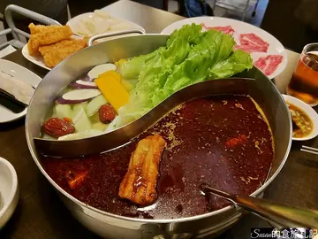 住台中的好處就是往北部很快,往南部跑也方便一年之中總會南下幾次台南、南下幾次高雄這次是為了聽講座約朋友一起到訪台南其實是快閃(笑)早上從台中出發,中午到台南享用午餐後參加講座,活動結束之後享用晚餐之後回台中出發前我們上網找了火車站附近的美食,選了我們都想要吃的麻辣鍋(哈哈~~)確認了時間就先行訂位了,上網爬文這家是需要事先訂位比較保險的在圓環旁邊的青年路上,寬窄巷子四川麻辣鍋一樓只有接待處,座位區在二樓 空間的利用相當極至阿!醬料區-簡單的四個大碗和二瓶醋和醬油菜單相當別緻,分類和介紹也相當清楚菜單從壹到拾肆一一排序下去完整菜單 壹、精選湯底湯底方面經典鴛鴦鍋四川麻辣鍋分成微辣、中辣、大辣、斷魂辣白菜雞湯鍋、養生蕃茄鍋、醇濃牛奶鍋、菌菇蔬食鍋貳、牛肉、鴨肉、羊肉叁、豬肉、雞肉肆、海鮮伍、滷水陸、魚漿柒、火鍋料捌、丸子玖、菌菇拾、蔬菜拾壹、主食 拾貳、軟性飲料(無酒精飲料)拾叁、商業型啤酒拾肆、精釀啤酒本來參考網路資訊是被特別的九宮格麻辣鍋所吸引但是那是只有一種鍋底麻辣鍋才獨有的鍋有鑑於我是喜歡吃辣但吃不了很辣(笑)我們選了鴛鴦鍋四川麻辣鍋+白菜雞湯鍋四川麻辣鍋分成微辣、中辣、大辣、斷魂辣!!斷魂辣!!看到這三個字,我的嘴角忍不住失守(哈哈哈........)我們選了小辣麻辣鍋的鍋底滷鴨血及豆腐無限供應 鴨血滑嫩可口、豆腐吸附滿滿的麻辣湯汁相當美味阿安格斯雪花牛大甲芋頭朋友選了白飯我選了寧波年糕寧波年糕在麻辣湯裡煮過真的超美味的季節蔬菜拼盤高麗菜、大陸妹、玉米荀、茄子、熟甜玉米、大黃瓜、木耳、黃金地瓜角、南瓜很多花枝漿福州手工熟燕餃椒香川丸子 看完資訊,我們要認真用餐囉!寬窄巷子的四川麻辣鍋底香辣過癮,我們朋友都很喜歡這種麻辣的風味食材方面都很講究,牛肉質量很好、蔬菜很新鮮、丸餃類也不會粉粉的、芋頭綿密到讓人停不下手呢!…查看更多