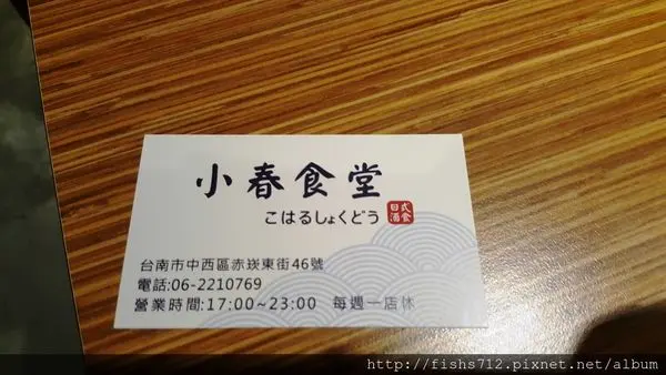 小春食堂 (台南) 網址: https://s.openrice.com/cHRSmm25zs300 地址: 台南中西區赤崁東街46號 電話: +886 +88662210769