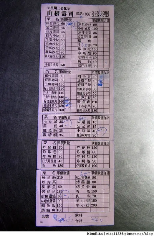 台南美食這家山根壽司也算是在地老店了,但他的評價一直都是很兩極,有一派人超愛台式壽司的支持者,另一派就是嫌到一個不行,貴又粗糙,每次經過都到超多人排隊,那到底好不好吃,我們來去瞧瞧吧!山根壽司|交通方式&停車資訊山根壽司就在台南赤崁樓的對面,這附近也算是台南美食老店集中地,隨便都幾十年起跳的老店一堆,山根壽司是以路邊小吃攤的形式來經營,它有三個店面,但大部份的座位就直接擺在騎樓,我們來的時候他快打烊了,人還是很多山根壽司有提醒要開車的朋友要停到停車場,千萬不要亂停,這裡是交通重點取締區域山根壽司|菜單山根壽司的菜單,菜色真的很多,一時之間真的不知道要怎麼點,感覺要帶熟客來比較不會被雷到,除了菜單上的外,牆壁上也有隱藏版菜單可以選擇點完餐先結帳,小攤車後面的師父就會幫你做山根壽司|菜色介紹點了綜合握壽司、烤蛤蠣還有鮭魚卵手捲,這樣340元,算貴嗎?綜合握壽司,就那種很台式的握壽司,魚料上刷甜甜的醬油,看起來晶瑩剔透的,芥末是放在裡面,不要芥末要先說,老實說握壽司真的很小一顆,目測比爭鮮還要小,看起來相當的空虛XD有旗魚、鮭魚、鮪魚三種,畢竟是老店了,新鮮度是有,但魚片薄薄的,台式壽司甜甜的感覺也不賴,鮭魚油脂度很豐富,鮪魚雖然是赤身部位也很鮮甜,但就是很小,口感沒有飽滿,吃完一盤有點空虛鮭魚卵手捲,90元很瘦一卷….好在鮭魚卵算是給的有誠意的,一卷三口吃完鹽烤蛤蠣,這個好吃!蛤蠣大顆又肥美,而且完全無沙,加上鹽烤調味,真的鮮美好吃!但就是有點少顆><整體來說山根壽司的價位乍看之下蠻便宜的,但他的份量真的偏少,好在他的味道還不到很雷,食材選用也很新鮮,稍稍可以彌補一點空虛感,如果只是想解個嘴饞不吃飽,山根壽司是不錯的選擇…查看更多