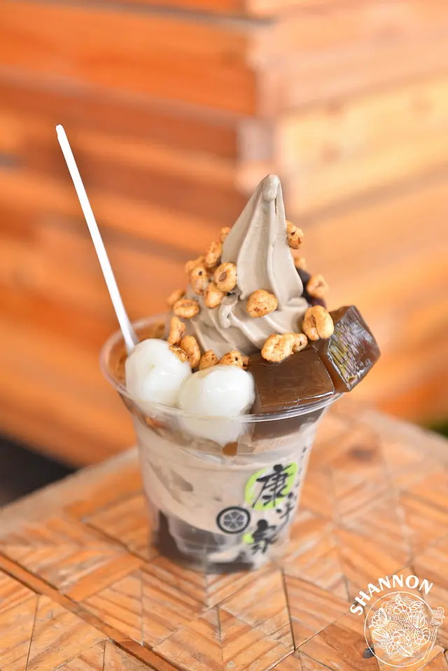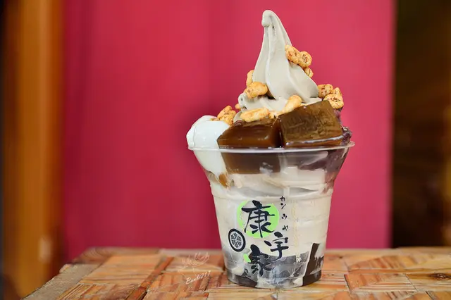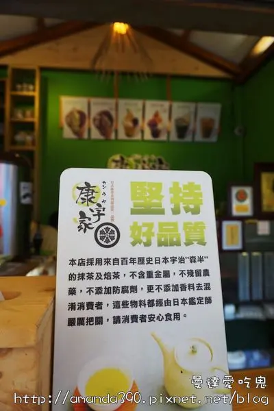 南下N次一直無緣吃到(殘念),身為抹茶控的我們發揮了運動家精神(握拳),南下三次終於....終於吃到,太開勳了!康宇家使用森半抹茶,由森半團隊教導,抹茶粉皆高規格由日本進口,品質上非常值得信賴!前幾天還接受食尚玩家採訪,也難怪有眾多忠實粉絲,連國外旅客也來嚐鮮。店門外擺放著與莎莎合照的食尚玩家看板,神社造型小店,一抹綠及和風日式裝潢日本味十足,超吸睛的!門前座椅區,可坐下來吃完冰在走,吃著冰享受著夏日微風,濃濃的一抹綠,呀呼!詢問一下店家怎麼前幾個月都沒開門,原來去日本考察學習,對於品質上有不斷精進提供更優質商品給大家,近期還有當季的『芒果霜淇淋』,好像很厲害!正觀望要選什麼的時候,熱情的民眾說這個好吃、這個也好喝!御抹茶飲料及芒果霜淇淋是期間限定商品媽呀,讓我跟vi更難下手,我倆有選擇性障礙,非常!後來選了抹茶白玉霜淇淋$90等待時間隨意拍拍,日式木屋裝潢,仔細一看是個小神社造型,上頭有祈願的鈴噹,電燈則是刷抹茶的茶筅,後頭擺設茶類相關商品,使用NISSEI冰淇淋與森半抹茶,而且在102年獲選百家好店,台南之光是也!店外座椅上是個迷你神社,還有一隻抹綠的冰淇淋上頭掛著牌『嚴選宇治抹茶』。櫥窗裡可愛的食物公仔及茶具,店裡店外都讓我有錯覺在日本店舖買冰淇淋吃。抹茶的味道相當濃郁不死甜,沒有粉味,在口中慢慢回甘,消暑解渴非常甘純,搭上二顆Q彈有勁白玉丸子,綿密細緻香甜紅豆,軟而不爛,酥脆外殼,非常好吃!這跟在日本吃的一模模一樣樣! ------------------------------後記:國華街道路上悠閒靜謐很適合散步,除了康宇家之外也有很多打卡名店。抹茶非常優質,很值得一訪再訪,跟在日本吃的基乎完全一樣,是抹茶控必需收服的好店,GOTCHA!------------------------------…查看更多
