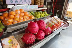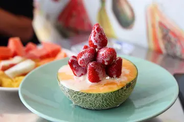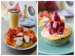 台南正興街的泰成水果店,把傳統的水果店變成水果冰品店,採半顆哈蜜瓜加上季節限定的草莓,再淋上煉乳,簡直是太誘人了!水果店本業的現切水果,以新鮮水果打成的果汁,也是非常新鮮及美味!台南國華商圈美食推薦-泰成水果店來到台南正興街,有兩家超熱門的店家,其一為散步美食-蜷尾家,另一家就是以新鮮水果打出名號的泰成水果店了!泰成水果店 怎麼去泰成水果店位於台南正興街與國華街口附近,街道不是太寬,若遇到假日,街道上更是被人潮塞滿,因此不建議開車或騎車進來。若是開車,大家可以把車停在海安路地下停車場,約可停2000輛,平日一小時20元,假日一小時30元,停好車後,步行過來,只要幾分鐘,然後就可以開始逛國華友愛商圈了!泰成水果店原本就是傳統的水果店,在地經營已70年了,店頭展示著當季的各種水果。除了新鮮水果,也有芒果乾喔!店家門口備有洗手台,吃冰不小心手黏黏的,可以好好洗乾淨。由於有時人潮過多,為控制店內的狀況及點餐,無論內用或外帶,必須排隊並等候安排點餐。【94 折優惠】台南十鼓仁糖文創園區|遊園票・星光票(即買即用)優惠68折 | 台南頑皮世界野生動物園門票 | 獨家長頸鹿手繪門票台灣台南 | 台南四草 綠色隧道門票【限量場次】台南學甲|頑皮世界野生動物園|水豚互動體驗預約進入泰成水果店的店內,在水果冰箱旁的櫃檯點餐結帳後,之後由服務人員送餐至桌上。泰成水果店的店內座位多以四人桌為主,這天正好開始營業之際來訪,因此可以拍到部份空景。但後來很快很客滿了,再來的人就必須排隊等候了!另外門口也有兩個座位區,大約可容納10人左右。泰成水果店的木質櫃子,感覺很有歷史了,搭配復古的雜誌,很有復古風。在此櫃子後方也有幾張座位。泰成水果店 菜單價錢泰成水果店的菜單分成果汁類、鮮奶類、原汁類、切盤類及冰沙類。(拍攝日期:2023.03,若餐點或價格有異動,請以店家公告為主)而泰成水果店最知名的就是這個哈蜜瓜冰了!哈蜜瓜冰一共有四種組合,主要就是只半顆哈蜜瓜為基底,然後再選擇想搭配在其上的水果雪酪,或是季節限定的草莓。泰成水果店-鳳梨檸檬汁 $70來到府城,天氣永遠都非常好,先來杯鳳梨檸檬汁解熱,甜中帶微酸的滋味,令人好著迷!泰成水果店-綜合水果切盤 $150綜合水果盤固定會有5種水果,以當季的水果為主。隨切盤而上的會有甘草鹽粉。這天的綜合水果有鳳梨、蓮霧、西瓜、木瓜及哈蜜瓜。蓮霧是一顆的份量,鳳梨切得很厚一片,搭配梅粉真是超搭的。哈蜜瓜熟度恰到好處,水份超多甜度也很棒!台灣的西瓜品質真的沒話說,略帶沙沙的口感,水份很足!在家中切木瓜,最常吃到很生的狀況,這木瓜卻熟成得剛剛好,軟度及甜度都很優秀!泰成水果店-哈蜜瓜草莓冰 $220適逢草莓季,怎麼能錯過呢!垂涎欲滴的草莓,顆顆頭好壯壯酸甜有味,再淋上甜蜜的煉乳,簡直令人無法抵擋。半顆的哈蜜瓜中,中間放入了哈蜜瓜雪酪,口感就像冰沙一般,好清涼!彷彿就像在吃冰凍的哈蜜瓜一般地真實,超好吃的!這次是多年後再訪台南,把之前喜歡的店再吃過一遍,還是覺得好幸福!…查看更多