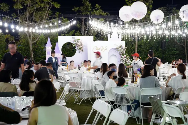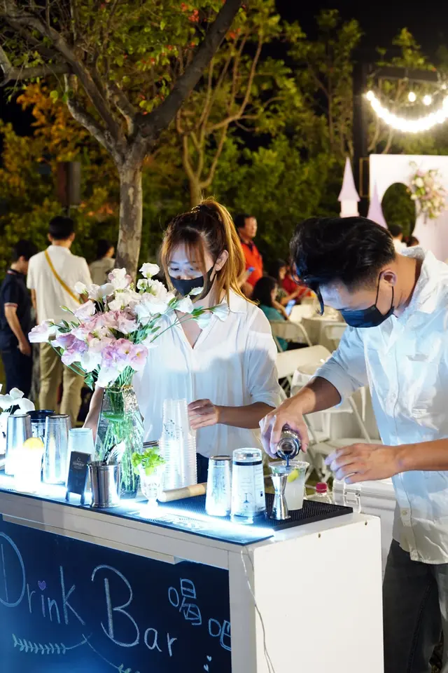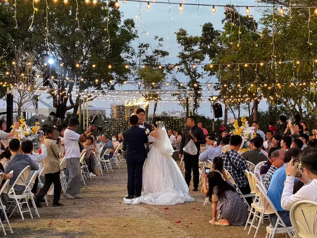 現在婚禮都那麼精緻的嗎~露天大草地、漂亮燈飾、鮮花、西式純白系😍一切都顛覆我對婚宴的印象呢!!▼表弟和弟妹的結婚照&全家福照,連相片也佈置得這麼漂亮,愛了愛了❤️ ❤️▼Drink Bar調酒師現場特調雞尾酒,喜宴未開始就微醺~▼這場喜宴好像是洪廚辦的,前面氣氛感覺很棒,讓我們也很期待菜色!▼阿伯阿嬸他們也都開始喝了🤣我剛好坐在外燴工作區附近,香味一直飄來,好香好餓呀,我腳也不自覺走到辦桌後場…▼原來是這個大蒸籠在蒸東西,難怪這麼香!!▼後場非常壯觀,一大~桌子菜色,我遠遠觀看辦桌人員忙碌又不紛亂的工作身影,手上也有戴手套很衛生,感覺經驗豐富呢!專業!沒多久傳來主持司儀說婚宴即將開始,我趕緊跑回座位🤤準備開吃囉。 珍菌地雞魚翅風味鍋▼第一道菜很特別,不是開胃冷盤,而是雞湯!後來問我表弟,原來是象徵「起家」台語的諧音,吃雞起家!這還是我第一次聽到呢~好吉利的意涵!▼雞湯滿滿的海料魚翅,隨手一撈就是一大片,吃得好幸福呀🥰▼餘光瞄到辦桌人員推著餐車和草皮奮鬥,餐點端到我們桌上居然一點湯汁都沒灑,好功力! 手作長春捲好清爽的擺盤,這個水藍真的是畫龍點睛,前菜的輕盈氛圍營造的很好~醬佐翡翠螺竹子做的叉子,形狀好像一個個愛心❤️這大概是我吃過最漂亮的螺肉了! 醋みそ(味噌)中卷小卷味道好鮮好爽口,原來還可以搭配蘋果醋味噌醬,吃喜宴居然讓我學到了!之後回家來試試看,不過應該沒辦法調的這麼好吃,畢竟喜宴主廚是專業的嘛。碧綠東坡肉東坡肉上菜~開始大魚大肉啦!眼尖的我也注意到送菜人員有戴手套,整潔滿分good、good。 ▼這肥嫩肥嫩的豬皮,入口不油膩,瘦肉也是一夾即化,愛吃的人可真不少~響螺珊瑚貝這黑醋醬淋得好藝術,搭配白色瓷盤充滿西餐感,涼拌貝肉和蔬菜,很喜歡這種清爽感。 漁師刺身の鮮饗宴這這這生魚片也太美了吧😍我連吃飯店都沒看過這麼美的擺盤,居然在辦桌吃到!晶瑩剔透的圓盤冰,彷彿在說月圓人圓滿~而且上面的花是鮮花!好美呀!▼生魚片也是有厚有新鮮。 ▼這場婚禮還有個很有趣的地方,新郎新娘兩人自己坐!可以觀看全場,又可以吃得盡興,這樣安排挺不錯的耶!▼於是也誕生了專屬服務管家~專門幫新人們上菜、桌邊服務。▼連餐點也是精緻的單人份,辦桌主廚也太厲害了,根本就是在吃西餐套餐,完全顛覆我對傳統喜宴的想像!▼白蘿蔔捲鮮鮭魚,精緻、小小一口也不會破壞唇妝。▼現榨果汁會一直補,喝完就跑去拿一壺~我自己就喝了好幾杯,果汁富翁🍹鮑魚田樂燒進級職人壽司✨ ✨同樣讓人驚呼的擺盤~連我弟也要端起來合拍一張!▼一人一顆鮮嫩鮑魚,搭配滿滿料的壽司捲,吃起來飽足又爽口!黑潮珍珠龍蝦蒸金銀蒜龍蝦人人有份,肉彈飽滿,好鮮!海大蝦現煎南瓜醬海大蝦也是一人一盤,光擺盤就超費工!蝦肉很甜,搭配南瓜醬剛剛好的清爽。 龍膽石斑櫻桃鴨牛蒡壽喜燒又是龍蝦、又是龍膽石斑,今天吃海鮮吃得好滿足❤️而且每道菜葷素搭配恰到好處,已經吃過半場了,卻也不顯膩口,越吃越順口就是指這樣子吧!八寶玉露海鮮羹怎能少了這道經典辦桌手路菜~鮮美魚翅海鮮羹,滿滿的料,湯頭喝起來濃郁又爽口,讓大家也是一碗接一碗!後面吃得太開心,漏掉兩道還有果盤忘記拍照,不過看前面菜色這樣,應該也能想到一樣是很精緻又豐盛!今天這場婚禮對我來說很創新,無論是佈置或是菜色,都很有新鮮感!想當初我結婚時可是大紫千紅,非常傳統~現在年輕人可真懂~尤其是辦桌菜色讓賓主盡歡,不僅美味、擺盤美還兼顧主人家面子,讓我都想再辦一次婚禮了!我也找表弟要到了辦桌的電話,立刻加入口袋名單,大家需要辦桌外燴廠商也可以參考看看~洪廚喜宴地址:台南市柳營區雙和路51號電話:06 622 3925營業時間:10:00-21:00粉專:https://reurl.cc/GAoA3y檢視較大的地圖…查看更多