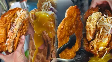 炸蛋蔥油餅-竹力亭:台南最厲害的炸蛋蔥油餅底家!超大雞排、台南虱目魚條給它夾進去,變成全台最厚、最大