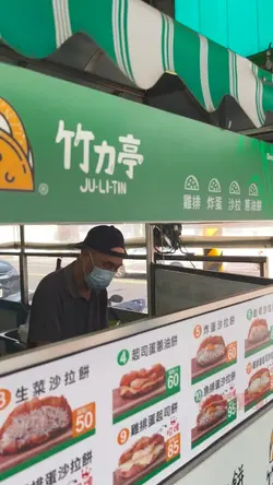 簡樸的蔥油餅小吃攤 有露天座椅的小吃攤,供應夾有雞肉、魚肉及煎蛋的蔥油餅。
