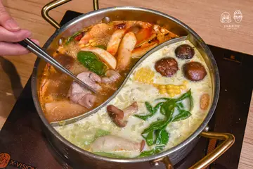 台南火鍋推薦!位在台南安平區的聚日式鍋物台南中華西店,在台中、台北等全台各地都有分店!聚日式鍋物菜單主打道地的日式鍋物湯底,現在幾乎每一間門市已經改成提供半自助式用餐,最低只要$308元,就能享有自助吧的野菜、牛肉壽喜燒、松露野菇奶油炊飯、冰淇淋甜點、日式拉麵、其他地方喝不到的黑豆奶茶等食材吃到飽,加上寬敞且日系風格的環境很適合團體聚餐、慶生過節及慶祝母親節大餐,因為生意真的不錯,所以建議大家提前訂位唷!聚日式鍋物台南中華西店停車交通位置鄰近安平老街、和樂廣場、國華街、小西門的聚日式鍋物台南中華西店,就坐落於府前路二段與中華西路二段的交叉口,騎機車或是開車來這吃好吃的火鍋自助吧吃到飽,有路邊可停放。聚日式鍋物台南中華西店環境來到門口看到樓梯往上走,就是聚日式鍋物台南中華西店。聚日式鍋物台南中華西店的環境寬敞舒適,且新穎明亮,加上大量的木質設計非常溫馨,同時充滿日式氛圍。座位規劃以4人為主,非常適合小家庭聚餐、三五好友及慶生過節。加上櫻花的點綴讓環境更加美輪美奐,讓人彷彿有了在櫻花樹下野餐的浪漫感。聚日式鍋物台南中華西店吃到飽自助吧聚日式鍋物台南中華西店的野菜有兩區,讓大家不用擠在同一個地方夾取,細數了一下,檯面上有23種火鍋食材,而且都很新鮮。醬料區的選擇也很多,同時牆面還有提供聚自己獨創的特殊醬汁組合,大家可以試著搭配看看。哈密瓜冰沙、梅子醋冰沙以及在其他地方喝不到的黑豆奶茶!熱飲有搭咖啡因及無咖啡因的茶包及咖啡。霜淇淋不只是霜淇淋,旁邊還有多種配料讓你做出創意吃法。配料提供了日式蕨餅、黑糖珍珠、巧克力酥片、蜜紅豆。以及黑糖漿、巧克力醬。熱的甜點則是桂圓黑木耳釀,小朋友也喜歡喝。札幌熊起司牛奶湯的白色熊熊底下還有兩片起司,激辛麻辣湯則是額外提供乾辣椒,吃比較辣的朋友可以多加一點辣椒來熬煮,激辛麻辣湯有著淡淡的花椒香,辣度剛剛好,不會過於刺激或是直接辣喉嚨。札幌熊起司牛奶湯 +$69激辛麻辣湯 +$69札幌熊起司牛奶湯及激辛麻辣湯都是必點,兩種湯頭都會額外提供一隻可愛的冰磚熊~非常好打卡拍照呢!札幌熊起司牛奶湯的湯頭非常濃醇,再煮之前,店家還會刨上大量起司增加香氣,因此牛奶控絕對必點這個口味,再加上裡頭的碎洋蔥熬煮,讓札幌熊起司牛奶湯散發著淡淡輕甜感,也增加耐吃度。聚日式鍋物菜單價格酌收10%服務費。用餐時間100分鐘。每人低消$308元,自助吧吃到飽。身高121cm~140cm酌收218元。身高未滿120cm不收低消費用。雪花豬足足有330g,聚日式鍋物的肉品都是原塊肉切下,肉質軟嫩帶點彈性之外,還感受得到濃郁的豬肉香氣,完全沒有豬騷味唷,而且還保有一點厚度,咀嚼起來很有存在感,超容易吃到停不下來!不管搭牛奶鍋還是麻辣鍋都很合適,雖然這兩種湯頭的口味比較濃郁,但依然品嚐的到豬肉的甜味。9種海鮮都很新鮮,端上著沒有立刻吃也沒都沒腥味!淡菜肉質彈牙,沒有土味,魚肉的肉質也都很細緻。魷魚吃起來Q彈有咬勁,有濃濃的魷魚香,單吃不沾醬就很好吃。自取的蔬菜都很新鮮,蟳味棒、魚板也比一般的火鍋料好吃~兩種湯頭不管煮什麼都很讚。聚日式鍋物隱藏吃法(1)聚日式鍋物其實還有隱藏版的吃法,像是綠藻烏龍麵+適量胡麻醬&蒜泥,就可以做成充滿蒜味的胡麻乾拌麵,愛吃蒜的多加一點,那濃厚無比的蒜香及嗆香,搭配Q彈的麵條超犯規,讓你一入口直呼好爽好好吃!這男生絕對愛!聚日式鍋物隱藏吃法(2)飲料先放入黑糖珍珠,再加入黑豆奶茶,就變成黑豆QQ奶茶,跟手搖飲料一樣呢!聚日式鍋物隱藏優惠現在只要線上填寫問券,就會送鮮肉漿,一條的鮮肉漿可以做成四顆丸子,肉漿比丸子再軟一點,肉香一樣也很濃,超好吃的!最後吃飽喝足,再去做個好吃的霜淇淋甜點做結尾,牛奶口味的霜淇淋奶香頗濃,搭配黑糖漿、巧克力碎片、蕨餅及黑糖珍珠超好吃,為了這個甜點,讓人再訪度大提升!聚日式鍋物的蔬菜放題選擇不少,且食材新鮮、肉品都是原塊肉,湯頭更是真材實料不馬虎,而自製的霜淇淋甜…查看更多