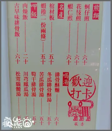 在台南要找到50年以上的老店應該很容易吧,哈~這次到赤崁隨意吃的行程下,嗯~棺材板啊!好久沒有吃了耶,都N年了吧XD,那就來回顧一下吧,話說這家虎頭可有70多年了呢!真的也是家老老店了。哈,打卡還真是時下很夯的活動耶,不過俺不會啦(噗),話說這張的重點是菜單齁!價格的話算還好吧~蚵仔煎,其實我對台南的蚵仔煎是又愛又怕耶,因為曾經在吃的時後有人影射那蚵仔煎的樣冒是..嗯,還是不寫好了,因為有些陰影存在啦,可是面對這種小吃又很愛咧,真矛盾。喔喔,看來看我印象中的不太一樣耶,粉漿的話不是那麼多,而當中的菜料可是滿滿的喔,加上他們家偏甜的特調醬來說,嗯~其實我還挺喜歡的XD。蚵仔的話不算是小隻啦,而且挺鮮挺飽滿的喔,不過沒有太多隻就是了(哈~是要要求多少啊!!嘖...)。棺材板,疑...又是和我學生時代吃的有點不一樣耶,光感覺光厚度就有差,是我的印象出問題了嗎?那就重新再來認識一下`棺材板好了。看到鞤翁滿滿的羹料流出的感覺真的只能說~好耶XD,滿到流出來了呢感覺真好啊,當做是容器的吐司被炸得好酥好脆啊,不過吃起來不會很油膩啦!當中的料真的很豐富耶,有肉有海鮮的,雖然還出現了我不喜歡的冷凍三色蔬,不過整體上來說那羹的口味帶著些許的香甜感我還是挺喜歡的,沾著羹汁和料一起吃的吐司啊,吸收了湯汁而軟化了些,口感是外脆內軟的還挺不錯的。PS.以上為個人口感和喜好,僅供參考啦!…查看更多