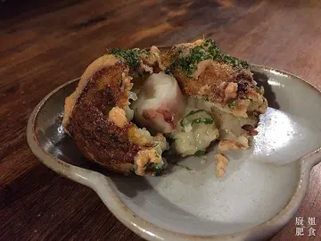 在步行去找棺材板的路上,我們路過蛸屋,於是又進去了。店子地下有幾個bar位,店家就著我們上2樓坐。店子是居酒屋,以賣日本清酒,啤酒等為主,配有幾款章魚燒另外當日還供應一款飯團和三文魚茶泡飯不一會,沾著沙律醬,散上青蔥和木魚碎的原味章魚燒上枱了,章魚燒外面烤得微焦很香,一口咬下去,嘩,非常的熱呀! 香軟的內心有1粒又大又Q彈的章魚,配啤酒,一絕呢!三文魚茶泡飯,除了飯面的三文魚碎和海草,還有蔥花,脆米和海帶做配料,茶湯用了木魚和海帶煮,既有茶香又有海鮮的鮮味。和朋友坐在Tatame上, 吃1口食物,呷1口冰凍啤酒,一樂也。查看更多