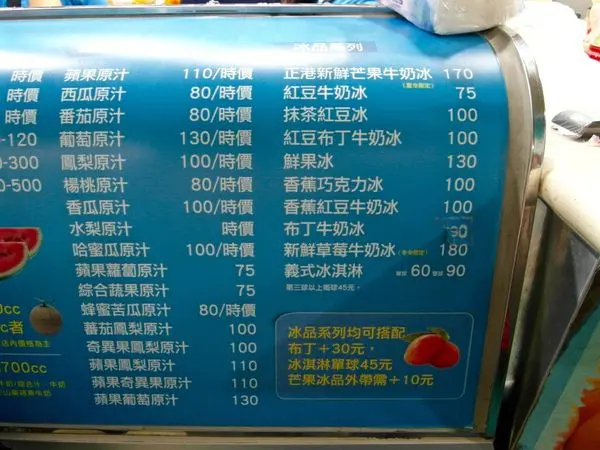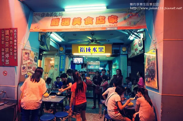 台灣是個水果寶島,當然今天在台南也一樣。在市區,像這樣的冰果店還真不少。在籌備旅遊行程前,有是先偷偷問一下民宿主人一些水果店的資訊,他則推了裕成和泰成給我。 雖然莉莉水果店名氣真的挺旺的。不過據說都是觀光客在去的,在地人似乎鮮少會到那。至於滋味如何?當然沒吃過所以不能亂認定囉~所以莉莉水果店就先擺到下次見囉~ 這次就選你了裕成水果店! 這種日夜溫差這麼大的天氣還跑來冰果店,此時老弟和芝芝小姐應該會覺得我腦子壞掉了吧~(不過在地的美食,一定要嚐嚐啊!) 店前還掛有嚴選美食店家,感覺似乎不簡單呢! 一進店裡就看到繁多的水果整齊擺好,而且看起來都精心挑選,外表可真可口。 而冷藏櫃裡也放了切好、洗好的,以及進口的水果。看那日本來的梨子,感覺打開來它會發亮... 最讓我心動是這日本的草莓吧!看起來又大又紅,一定很甜吧~ 都看到外頭這麼多水果了,當然店裡的menu就要給他很豐富啦! 雖然在這個時節吃不到台南最道地的芒果....那就換選正值季節的草莓切盤 (70元)吧! 草莓相當乾淨,連蒂頭也處理得很好,切成一半看起來就好吃樣。而草莓的好朋友煉乳當然不可以缺少囉!不過這草莓真的好吃,甜美之外帶些草莓該有的微酸感,搭配香濃的煉乳,正點。 現在可還是冬天,當然不會亂點個冰品來找罪受囉~所以我們選擇健康的果汁系列。 首先是我幫芝芝小姐選的山藥木瓜牛奶 (80元/左者)、老弟的葡萄汁+牛奶 (80元/中者),還有我的蘋果汁+牛奶 (80元/右者)。 (基本上我喝果汁都是不加糖的,除了比較健康外,就是要喝出水果最原始的甜,才是最好的~) 一開始芝芝小姐以為這杯只是單純的木瓜牛奶,也沒想太多就喝下去,但她說怎麼不太甜ㄟ!當然...因為裡頭有加入山藥啊~雖然甜度因為山藥減了許多,但是稠度加分,喝起來很綿密呢! 而老弟的葡萄牛奶也很有水準,平常果汁店本來就難看到葡萄牛奶的,不過這葡萄真的很甜,以這三杯來說,葡萄牛奶甜度奪冠。(不過才三杯做比較而已吧哈..) 我的蘋果牛奶最晚來,但店員也有提醒要盡快喝,不然會稠掉。裡頭還喝的到蘋果沙沙的口感,好喝。比起葡萄牛奶,果酸更為多些~ 整體來說我覺得裕成水果店水準還不賴,水果種類多又齊,而且都很新鮮,也處理得很好。但價格來說,我覺得不輸給台北呢!但是就冰果店而言,營業時間還到凌晨3點,整個也太大心~上班族或學生老是在外,幾乎任何時間都可以來吃盤水果或來上一杯果汁了!…查看更多