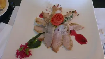 週末回鄉 就帶家人來吃個台南善化吃高檔餐廳囉! 店家位在善化啤酒廠附近隔壁就是高爾夫球場!窗外直接可以邊享用餐點邊欣賞路人甲打高爾夫球的英姿! 呵呵 看看menu, 在台南這個地方算是高價味了 套餐490上下不等我們點一道是店家免費體驗的松板豬排餐 另一道則點了迷迭香脆皮雞腿排餐第一道 餐前麵包 可以免費續用 這個剛上的時候 熱熱剛烤好很好吃 有手工麵包小麥的香氣 口感很Q!!! 給他五顆心我們續了兩次 家人都讚不絕口呢!第二道 鮮蔬沙拉 很清爽健康我覺得店家還蠻會擺盤的顏色也用得很繽紛 很讓人提神開味第三道 湯品要推薦的是這一個鮮菇濃湯!!!別小看他這一杯 他可是非常香濃濃郁店家把菇類打碎再燉煮成濃湯這一杯真的不能錯過!另一個牛尾清湯味道上也很濃郁 但與香菇濃湯相形之下略遜一籌第四道 前菜要推薦的是這一個龍蝦沙拉佐番茄!!上面的龍蝦沙拉吃的到粒粒鮮明的魚卵 搭配下面的番茄與小黃瓜一起享用口感真的很不錯! 好開胃唷!另一道是焗烤鮮蔬簡單來說就是切碎末的蔬菜粒上面灑著滿滿的起司下去烘烤因為老媽是起司控 所以他覺得不錯唷~但是我與弟弟則愛龍蝦沙拉番茄那一道 XD 第五道 主餐要推薦這邊的松板豬排!店加真的充分運用蔬果的五色美美的上菜色香味很俱全的一道料理中間的玫瑰花是番茄皮下去做的唷~第一次看到 好美唷^^旁邊桃紅色菜絲是醃過的高麗菜絲 也可以搭配食用旁邊還有青醬與酒醋醬可以沾著吃它們家的松板豬吃起來很鮮嫩 充滿油脂的松板豬搭配旁邊的洋蔥一起吃 不會過於油膩很順口! 另外一道是有兩大塊很夠份量的迷迭香去骨雞腿排因為已經去骨了 所以很好切食雞腿排很鮮嫩多汁 雞皮的香氣與油質一點也沒有浪費完全鎖在雞腿肉裡耶!!! 好吃好吃~~~第五道 甜點吃到這邊肚子已經有點飽了 哈哈我們點了奶酪與松露巧克力冰淇淋奶酪上面是酸酸甜甜的橘子醬 好吃!!冰淇淋因為上面還灑了巧克力醬老弟說也點兒太甜 哈 我倒是覺得還好耶~"甜"點嘛!!! 呵呵第六道 飲品我們點了黑咖啡與現打果汁 也還不錯~~~ 店家消費還有贈送旁邊的高爾夫球券30顆唷!! 這邊除了排餐/套餐可以選以外也有火鍋類 價位約NTD350上下下次有來善化想找高級餐廳可以考慮這一間唷~你絕對不會失望低~Read More