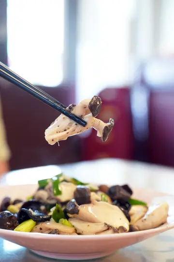 和老婆來下館子!是朋友推薦的一家永康熱炒家常菜餐廳。店面雖然不大,但菜色都是花了心思,讓我們家第一次來吃就愛上了!▽香橙料理食坊的自我介紹XD▽黑板上的私藏菜單,我們就照上面點了幾道想吃的,第一次來的朋友也可以像我們這樣做,吃特色菜就對了!▽冰箱有飲料,可以自取,餐後再結帳。▽我們有點一道椒香豬腳,因為看到牆上滷豬腳海報覺得好可口,食慾都上來了!▽總菜單。想吃哪道私藏菜單用寫的在白色框。▽餐點是現點現炒,一道道香噴噴的菜上桌,聞著香氣肚子開始叫了!▽首先下手的當然是豬腳XD這道是椒香豬腳,不會辣,倒是吃起來麻麻的,花椒被淋上熱油爆出花椒香,非常香!豬腳皮滷得很透,老闆說需滷製約一個小時,隨後繼續燜到透熟。吃起來軟糯糯的又不失Q度,一口吸進去好滿足,吃完豬皮再吃裡面的瘦肉,肥瘦搭配胃口大開!身為豬腳控寫著寫著又流口水了!▽再來是米香魚片,我老婆想吃吃看。很特別!第一次吃到裹著米下去炸的魚片,外面是爆米香的感覺,酥酥脆脆的,裡面是鮮嫩的魚肉,老闆說用的是無發的多利魚,魚切成薄片,整個吃起來有點像帶夾心的餅乾!還有一定要沾它搭配的特製羅望子醬汁,酸酸甜甜的很開胃也去油膩,整個覺得是一道中泰合併的創意菜!有南洋風味!▽接下來是一道素菜,雲耳炒菌菇。老闆說這是蠔菇,又叫黑美人菇,炒起來有不一樣的特殊菇氣!我覺得老闆火候和調味掌握得很不錯,用的黑美人菇味道也很特別,通常菇類、木耳類都會有一股它們特有的味道,老實說我不是很喜歡那種味道,但經過老闆料理之後,我居然覺得吃起來鮮美多汁誒!連我老婆也訝異難得我吃那麼多菇類。 ▽炒空心菜。清脆、蒜多、色澤漂亮,這樣就很好吃了!▽湯類我們點味噌鮮魚湯。送上來的時候好大一碗,這樣165元很划算,鮮魚是用大隻海鱸魚,肉厚帶魚皮、無刺,是我們喜歡吃的口感!吃起來很開心!份量上我覺得四個人比較剛好,兩人吃太多了🤣這次我們有點太貪心點太多,但是很好吃口味很合胃口所以又捨不得剩下來,結論就是又吃撐了!我覺得香橙料理食坊應該是我會特地跑來吃的餐廳,很想再試試看其他菜色,下次會帶小朋友一起來!香橙料理食坊地址:台南市永康區中山南路6號電話:0915 976 190時間:11:00-13:30、17:00-20:30(週二休息)檢視較大的地圖…查看更多