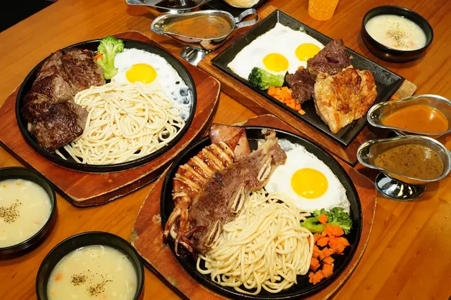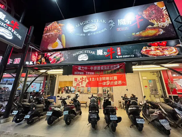 我是徹底的牛肉控!知道家裡附近來了一家平價牛排館~高興得不得了~雖然是平價牛排愛好者,但我也不隨便吃的!看到魔力牛店內標榜使用原塊肉、不使用重組肉,現在平價又會兼顧品質的店家真的很少,所以看到通常會想帶家人捧場看看!而安平這家魔力牛是安南魔力牛的分店,先前有幸在安南區吃過一回,牛排煎得很香,肉質也很不錯,能讓我記到現在真是不簡單~ ▼魔力牛排餐選擇豐富,各種肉品海鮮任搭任選,除了菜單表定的雙拼,還有自由配雙拼再折扣39元,價位很可愛!很適合胃口大的人或一起分享! ▼飲料採自助式,無限暢飲。 ▼還有脆脆的古早味餅乾小點心~ ▼各種調味料也都放在自助區自行取用。 ▼湯品是玉米濃湯也是在自助區無限享用,濃稠度對我來說剛剛好,口味上較不會膩口! ▼排餐附的麵包是爆漿奶油餐包,因為是現烤的,熱熱吃外皮酥脆,裡面則是融化的奶油內餡,沾上濃湯也很好吃。 ▼魔力牛的醬料是另外裝的,而且老闆說是用來配鐵板麵的!竟然不是配牛排?讓我們忍不住問了出來。老闆說他們的肉有經過鹽巴、香料醃製,原味吃本來就有味道,加上是特別挑選過的原塊肉,希望讓大家在吃平價牛排也能享受到原塊好肉的高級感,當然想配醬汁也是可以的! 接著進入魔力牛的排餐~菲力牛排追求細緻口感的絕對不能錯過菲力!▼嫩到不行的肉質,切開還是粉嫩的顏色,吃下去滿滿牛肉鮮汁,以及菲力油脂量不高的特色,加上原味直接吃,更能品嚐出牛肉的甜味~不想吃麵還能換成蛋,不用加價~變成雙蛋!菲力也可以沾一下半熟蛋,那也是極品搭配!蛋液的滑順搭配牛肉的軟嫩(滿足) 超值雙拼(沙朗牛排+五香雞排)大胃王必點!一次滿足兩種願望!▼沙朗牛排大概控制在七分熟,入口是軟嫩的,而且沒有吃到什麼筋,整體感受度很棒!五香雞排厚實又大塊,份量十足,CP值真的很高~ 自由雙拼(折扣39元)香煎雞腿排+炙燒魷魚排海陸通吃最爽!一次擁有兩種不同的口感!▼香煎雞腿排是蜜汁口味,本身是有味道的了,肉質鮮嫩多汁,鹹中帶甜的滋味絕對涮嘴!煎到恰恰的雞皮上撒了黑白芝麻,香氣讓一整塊吃完也不會覺得很油膩~搭配一整隻炙燒魷魚,沒想到吃起來這麼嫩!咀嚼時還充滿魷魚鮮汁,讓我們對這隻魷魚吸引力大增! 戰斧豬排大口吃肉的快感在戰斧豬排身上更鮮明!▼用手吃最爽快~今天要拍照我姊才比較”幼秀”,不然平時早就開啃啦!厚切的戰斧豬排經過鐵板煎製後,外層油亮油香,內裡還是軟嫩肉汁豐沛~魔力牛排餐各有特色,從精緻的菲力牛排到份量十足的雙拼,再到海陸雙拼的自由組合,以及霸氣十足的戰斧豬排,蛋白質與碳水的聯合雙打(原塊肉與鐵板麵餐包),是連一滴醬汁也不會放過的完食!吃得一乾二淨啦!魔力牛牛排館-安平文平店地址:台南市安平區文平路408號電話:06 295 0113營業時間:11:15-14:00、16:45-20:30(週二休息)--------魔力牛牛排館-台南安中店地址:台南市安南區安中路一段361-51號電話:06 247 9616營業時間:11:15-13:45、16:45-20:30(週二休息)…查看更多