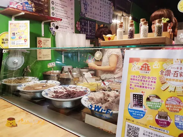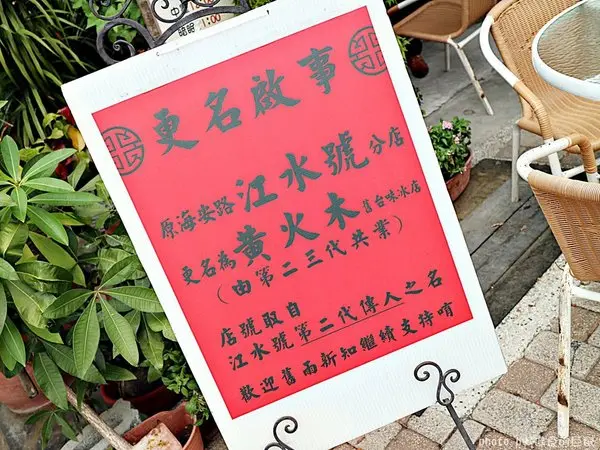 ***店家特色:「黃火木舊台味冰店」是由台南老字號江水號第二代傳人黃火木與第三代第二兒子黃鋕偉所共同創立的品牌,店號取自第二代黃火木的名字,江水號創立於日據時代昭和6年,從台南第一座公有市場西市場發跡,已開業超過80多年的時間。特殊口感及新鮮是黃火木舊台味冰店最大特色,依季節推出不同食材,熬煮到鬆軟的招牌芋頭口感細緻綿密,現煮的湯圓冰鎮口感更Q,還有土豆湯及以糯米/花豆/龍眼乾熬煮的米糕粥,冷熱各有獨特滋味。第三代在海安路開設新店面,維持配料每日現煮現賣傳統,三代傳承不走味,並提供更精緻的口感,半開放式店面乾淨明亮,有傳統老店氛圍,又兼具現代新風貌,榮獲台南市政府103年臺南金讚百家好店。▼店家環境:位在海安路段,外面路邊就是整排停車格,交通算便利!▼更名啟事:原來這間店是知名的江水號後代傳人所經營!▼座位區:以騎樓和戶外為主。▼招牌&菜單:多樣冰品,銅板價。配料也能自選喔!▼店內牆上有滿多店家相關報導和剪影:▼伴手禮推薦專區:有鳳梨片/米香/芋頭條/蕃薯條…等古早味零食,小時候很常吃這個,一邊看電視一邊吃,涮嘴又美味~通常不知不覺就吃光光了!!XD▼冰品製作區:▼多種配料提供選擇:據說店家每天自製配料,耗工費時,就是想原始呈現古早好滋味~▼店內還可見開店初的做冰器具:▼第二代老頭家-黃火木爺爺,也坐在那呢!笑容可掬的模樣~ 真的好可愛^^▼說到八寶冰,此店跟其他店不同的地方就在於:八寶冰還多了兩寶,變成了十寶冰!所以,他們家的八寶冰料都放高高~ 非常豐盛!▼他們家也與國際接軌,有英文菜單唷!所以你帶外國朋友來~也不用擔心!^^▼八寶冰/自選八寶冰/蓮子八寶冰:***超終極升級版(十寶冰):芋頭/湯圓/紅豆/粉角/花豆/綠豆/鳳梨/杏仁/薏仁/仙草/愛玉/蓮子/(店家隨意搭配十種配料)***▼看到冰品送上,真的超驚喜!傳統粗粒的剉冰,上方有著滿滿的堆高高的好料!我最愛 那超綿密濕潤的芋泥~ 還有好Q彈的透明粉粿&粉角,手工湯圓(圓仔)也好Q~都是很好吃的古早味!冰冰涼涼甜甜的~熱熱的天氣來一碗,就是爽快啊!搭配店家自製糖水,甜而不膩!這種傳統自製真糖水,喝了完全不口渴喔!▼檸檬愛玉冰:酸V酸V的檸檬酸甜滋味,愛玉QQ的~ 非常清爽啊!▼仙草冰:天然仙草帶有天然的涼感,粉角QQ口感好,這樣的搭配也很讚!▼芋頭冰:店家最有名的人氣配料,就是芋頭!說是芋頭,但是完全煮成泥狀,所以應該說是芋泥!濃郁的芋香~ 芋頭控的最愛^^▼冰鎮米糕粥:米糕粥是我們老台南人滿熟悉的家常甜湯,小時候長輩在冷冷的天氣都會煮上一鍋!喝了暖身又暖胃~ 不過,店家特製了“冰”的米糕粥,讓你無論炎夏冷冬,都能輕鬆來上一碗!品嚐~龍眼的香甜,米糕粥的滑順,也很讚!▼紅豆牛奶冰:紅豆軟而不甜,煉乳的乳香甜味,搭配擁有顆粒涮嘴感的剉冰,小朋友的最愛!▼紅豆杏仁牛奶冰:多了杏仁凍,口感更豐富!▼布丁牛奶冰:傳統的古早味布丁,整顆放在冰上,搖晃著還會左右彈!焦糖的香甜,布丁的細緻口感,平凡的好滋味!巨鼠食後感 這是一間會讓人再三回味的老字號冰店如果你不知道要吃什麼,來到『黃火木舊台味冰店』保證能讓你吃到心中的no.1眾多好料,如果不知道要挑哪一種就挑這道八寶冰吧!集結所有店家招牌好料,讓你一次全品嚐!炎炎夏日,快來吃冰吧!…查看更多