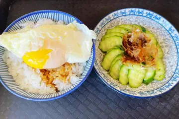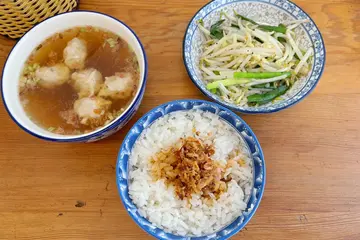 隱身在巷弄內的鼎富發豬油拌飯,賣的是台南傳統的古早味,除了主打的豬油拌飯之外,還有燒烤、小菜、特製湯品、古早味紅茶和汽水,小巷飄香,午餐晚餐都適宜,簡單又樸實的台南小吃。店內以小學生的課桌椅和廚房的紅磚牆為主要設計,營造出滿滿的懷舊氛圍。鼎富發豬油拌飯的MENU連菜單都是滿滿的懷舊氛圍,除了豬油拌飯之外,還有肉燥飯、冷盤小菜、燒烤類、湯類以及冷飲,另外也有各式的套餐組合可以選擇,食量大的朋友,建議點套餐會比較划算。首先是人手一碗的豬油拌飯,可選擇不加蛋30元。生蛋黃 35元。荷包蛋 (全熟、半熟)40元。加了生蛋黃的豬油拌飯,其實賣相頗佳,嘗鮮之前記得先攪拌均勻再食用,豬油醬汁淋得有點少,拌起來有點乾,不過油蔥酥給的倒是蠻大方的,整體來說,這碗豬油拌飯算是不錯吃的。我點的是100元的B套餐,份量對我來說剛剛好,相當的實惠。包含了一碗加了生蛋黃的豬油拌飯+烤串x 1(可選豬或雞)+魚丸湯。雞肉串烤的還不錯吃喔!魚丸湯的湯頭就是記憶中那的那股老味道,而且很大氣的給了五顆小丸子。炸手工甜不辣則是另外單點的,只要40元。柴魚黃瓜 40元,這個吃起來比較普通一些,沒有帶來太多的驚艷。這是D套餐,內含:豬油拌飯+燙青菜(豆芽)+肉羹清湯,只要90元,就能吃飽飽。受到大歡迎的古早美味,餐期期間來客真的是絡繹不絕,高朋滿座啊!…查看更多