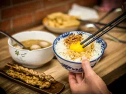 台南美食推薦這家鼎富發豬油拌飯,不知道什麼時侯古早味美食開始大行其道,越來越多年輕人開始嘗試懷舊的古早味料理,像是這家鼎富發豬油拌飯,沒想過以前常吃的豬油拌飯現在竟然爆紅!假日起碼要排上一個小時才吃得到!?鼎富發豬油拌飯|交通方式&停車資訊鼎富發豬油拌飯在大德街與大勇街的交叉口,但大德街與大勇街都是只能步行和騎摩托車,開車的朋友可以停到海安路的停車場再走進來比較方便不得不說這排隊的人潮真的有夠誇張,沿著小巷一路蔓延,站在門口幾乎看不到排隊的盡頭,而且我們來的時候是下午,雖然不是用餐時間,照樣大排長龍店內用餐環境蠻簡單的,都是矮矮的小桌椅,滿滿的人潮比肩而坐,店面是復古的台式鄉村風格,應該是想要營造懷舊的用餐氣氛鼎富發豬油拌飯|菜單價目表門口有工作人員幫忙引導,排到你的時候就會帶你去座位坐,點完餐拿號碼牌自己取餐,主打就是古早味豬油拌飯,還可以加生蛋黃或是荷包蛋,也有多款小菜可以挑配,除了單點也有套餐可以選擇,套餐價格會比較優惠內場工作人很多,但外面排隊的人潮更多,手腳再快感覺還是有點應付不來^^”鼎富發豬油拌飯|豬油拌飯套餐我們點了豬油拌飯套餐,豬油拌飯可以選生蛋黃跟半熟蛋,大部分的人都是選生蛋黃,套餐可以選兩種口味的烤串跟搭配一碗湯(貢丸或魚丸),一套120元其實不算貴,另外我們還單點了燙青菜跟炸甜不辣豬油拌飯加蛋,如果單點一碗是45元,食材就是油蔥豬油跟生蛋黃而已,要價45元不太便宜,但老實說撇去價格,它真的算很好吃!米飯超棒,又Q又香,加上豬油浸潤,香氣十足,加上脆脆的油蔥跟濃稠的生蛋黃,好吃半熟蛋的也好吃,因為是半熟荷包蛋,蛋白的部分外緣有脆度,加上噴香豬油的加持,真的很古早味,美味度完全不會輸給生蛋黃唷烤串有豬肉跟雞肉可以選擇,烤串表現就一般,先有醃漬過糅吃起來蠻有味道的,而且不會很乾柴,但味道就是普通的烤肉串魚丸湯,湯頭蠻輕甜的,有五顆魚丸,搭配豬油拌飯很搭鼎富發豬油拌飯整個吃下來表現確實不錯,雖然看起來是很普通的豬油拌飯,但他的味道還蠻精緻的,我覺得會和年輕人的胃口不是沒有原因,想吃最好避開假日,平日排隊的人會少一點唷…查看更多
