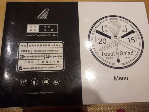 MAD EAT 怒吃一波!吐司.沙拉工場 (台南) 網址: https://s.openrice.com/cHRSmm2HCe500 地址: 台南東區民族路一段68號 電話: +886 0910659677