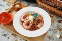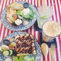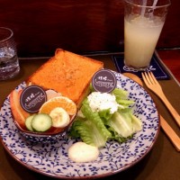 豚肉漢堡排 新鮮蔬果沙拉麵 冰檸檬蜜