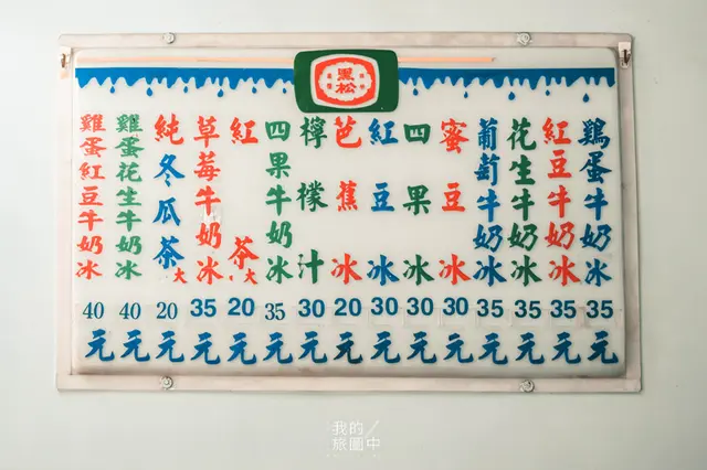 牆壁上掛著黑松汽水的價目表,彷彿是小時候才會看到的東西,雖然現在還是會看到保留黑松汽水價目表的店家,但已經非常少見了。仔細觀察每一樣冰品竟然都不超過50元,連價格都停留在過去的年代,對於身為台北人的我們來說,已經很久沒有看到這樣親民的價格了(笑)。