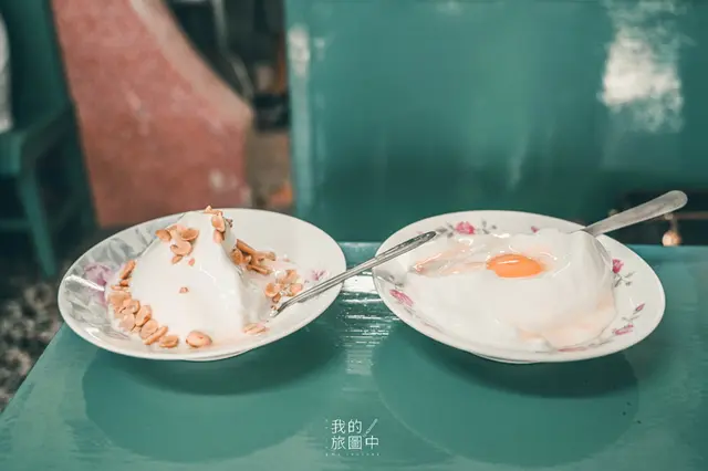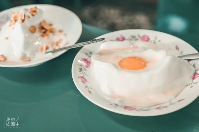 在吃之前最好先攪拌過後再入口,雞蛋和綿密的冰融合之後就感受不到腥味了,而這裡的冰品都是以香蕉冰為基底,再加上各種配料所製成,所謂的香蕉冰就是糖漿加入了香蕉油,所以香蕉的濃郁味道會蓋過於雞蛋,害怕吃生雞蛋的人或許就不會那麼敏感了。