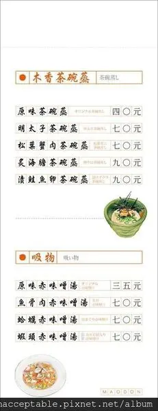 而熟丼部分則有牛丼與豬丼,另外還可以單點手卷、果醋、味噌湯以及茶碗蒸