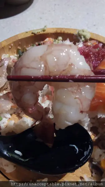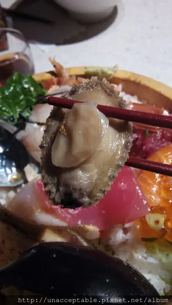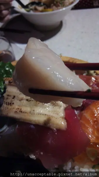 這就是毛丼的深度啦,非常的淺,也就是說,扣掉鋪在上面的滿滿海鮮料,