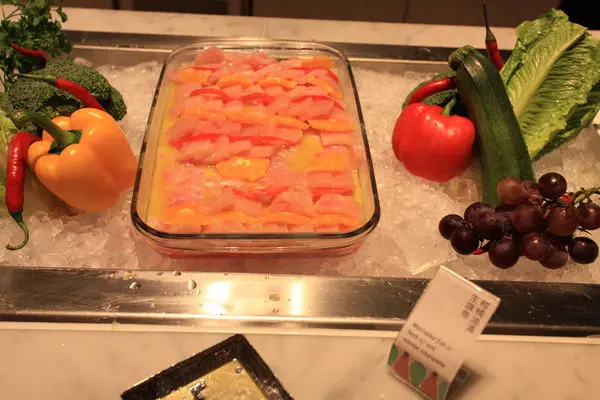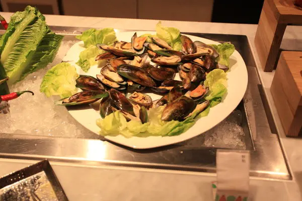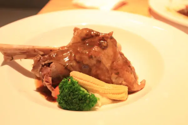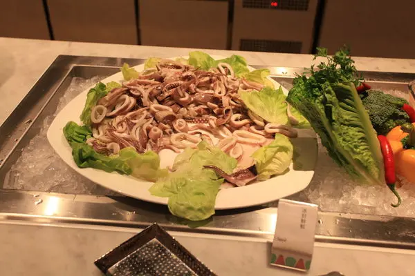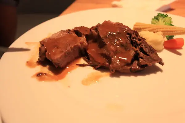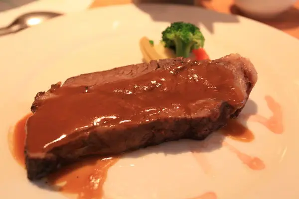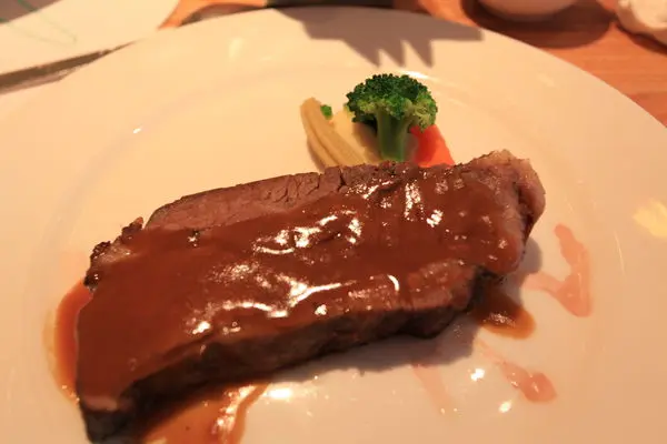 主菜來了期待的安格斯牛排,份量不多但搭其他自助菜色就剛好,主菜好像有很多菜色可選,今天我們選了3客安格斯牛排與1客羊膝,看隔桌客人點鮭魚排真的很小一個,6:30開始用餐真的過一會兒,安格斯牛排真的就點不到了。ˉˉ