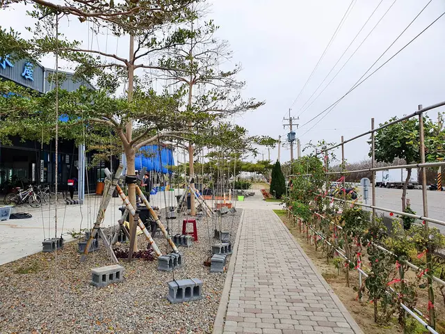 七股海邊風超大,樹木都用繩子綁著磚塊固定,增加了豐富感挺美的,也是一種另類的裝置藝術~哈哈