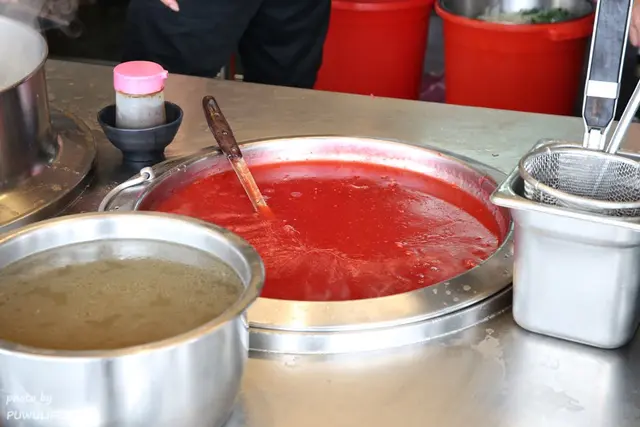 不過助仔最具特色的應該是這鍋飄著微酸氣味、外觀紅通通的紅麴湯了!