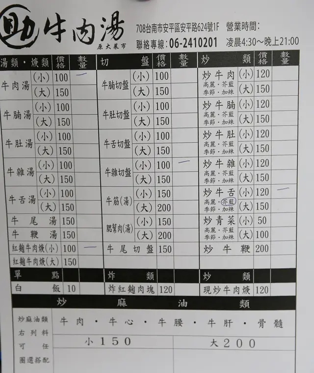 招牌上寫著營業時間自凌晨四點半到下午兩點,牛肉湯果然是台南最火紅的早餐選擇