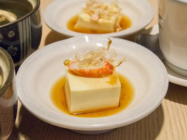 前菜是豆腐、蟹肉棒,淋上一點日式醬油,整體是滿清爽的,淡淡的醬香味