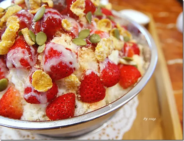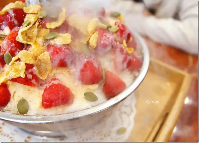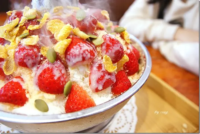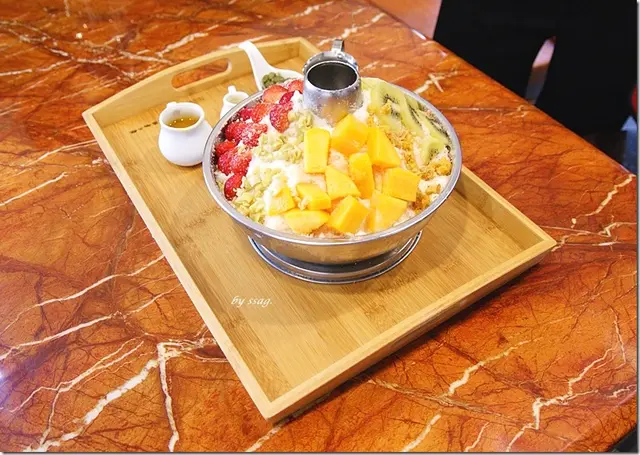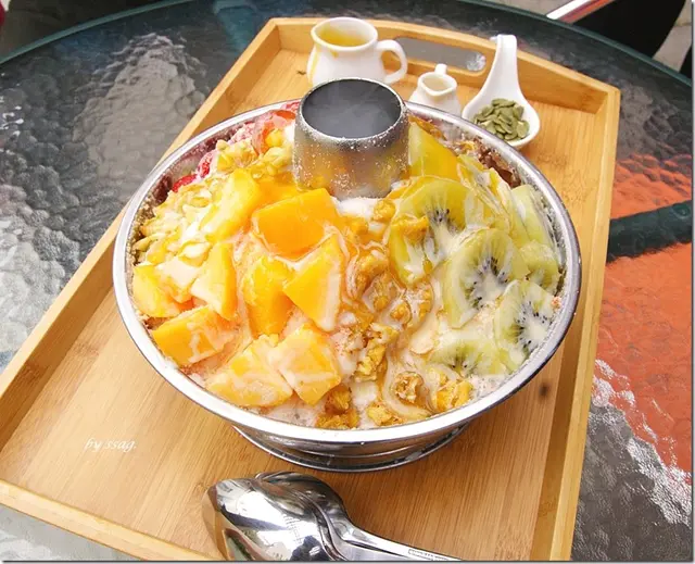再來是牛奶雪花冰,最上層鋪滿了新鮮水果與果乾,