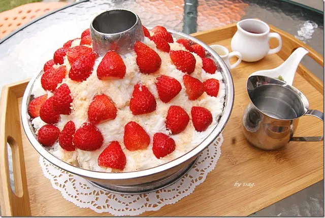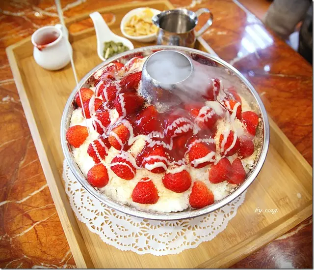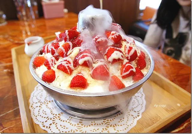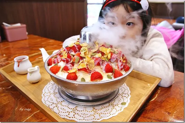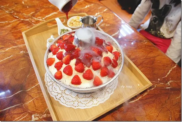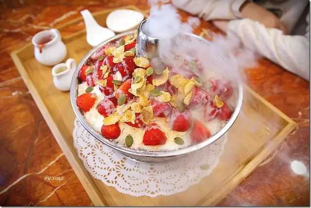 等煙霧漸漸散去,淋上香甜草莓醬與煉乳,