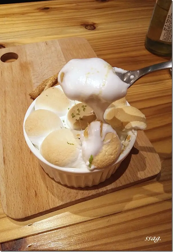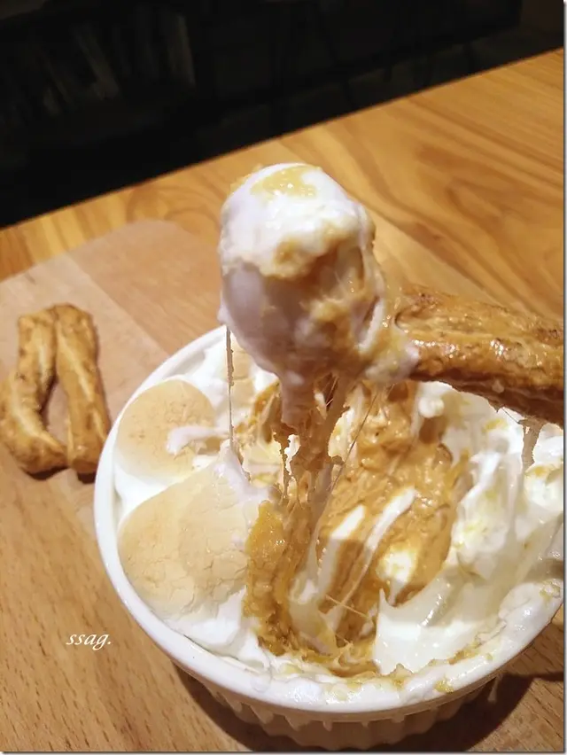 花生起士雲朵上層是厚厚的烤棉花糖,