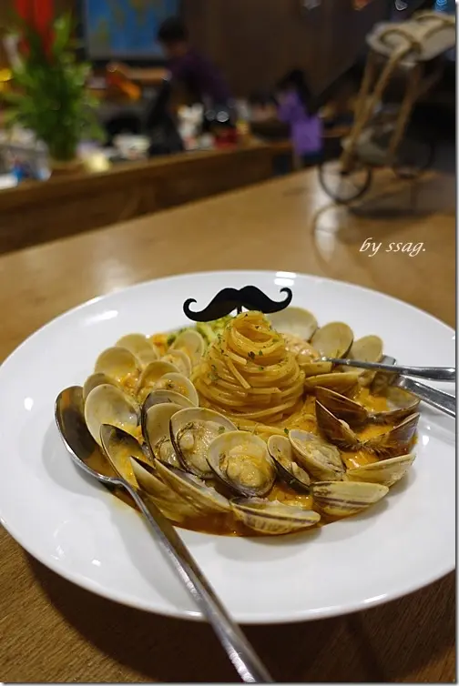 粉紅少女爆炸蛤蜊義大利麵