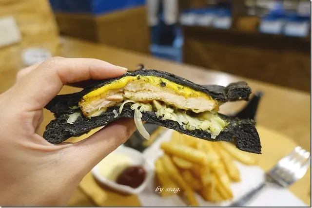 竹炭吐司外層烤得酥酥脆脆,