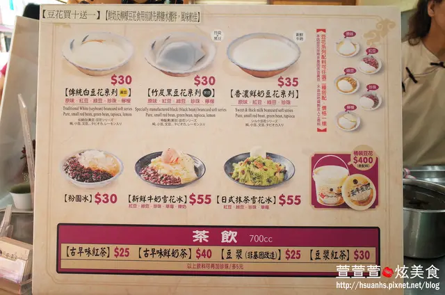 日式抹茶雪花冰、傳統豆花、鮮奶豆花、檸檬豆花