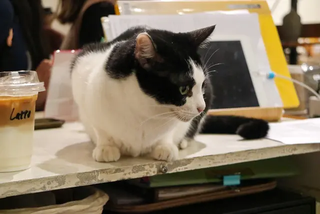 肥貓咖啡已經邁入第11年,是一家獨立經營的小咖啡店,老闆Sam本業是攝影師喔!牆上有很多愛貓的照片,當然本尊也在現場鑽來鑽去不怕生
