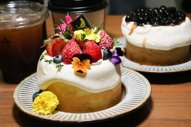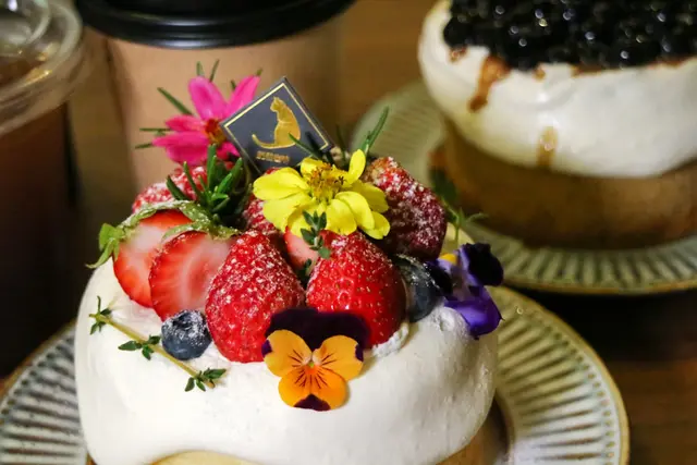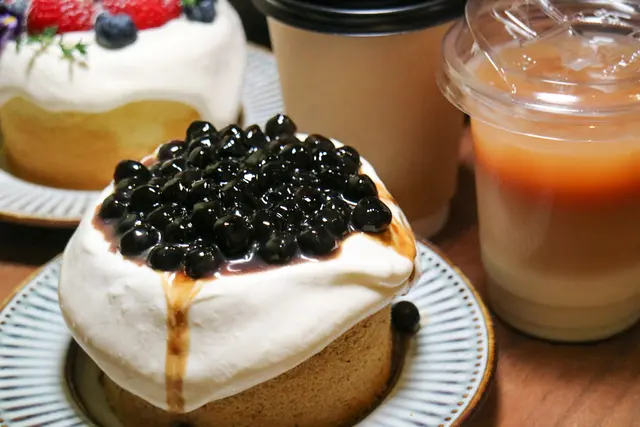 肥貓咖啡不只賣咖啡,戚風蛋糕也很厲害,浮誇的擺盤一上桌都是手機先食