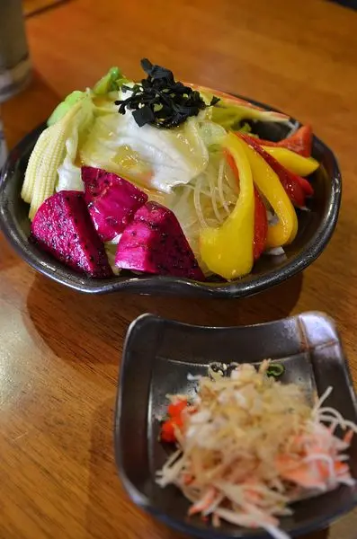 店家的和風醬是素食可食,他們也很貼心的幫我們把葷食食物另外裝盤~