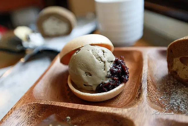最中冰淇淋裡頭的”最中”是日本一種米餅夾紅豆餡的一種甜點,店家特別從日本找一種東北的一種米製作的最中殼,香氣很特別吃起來口感也很棒~