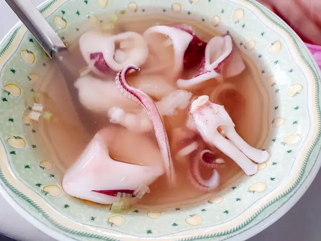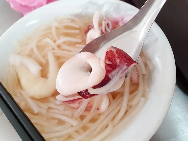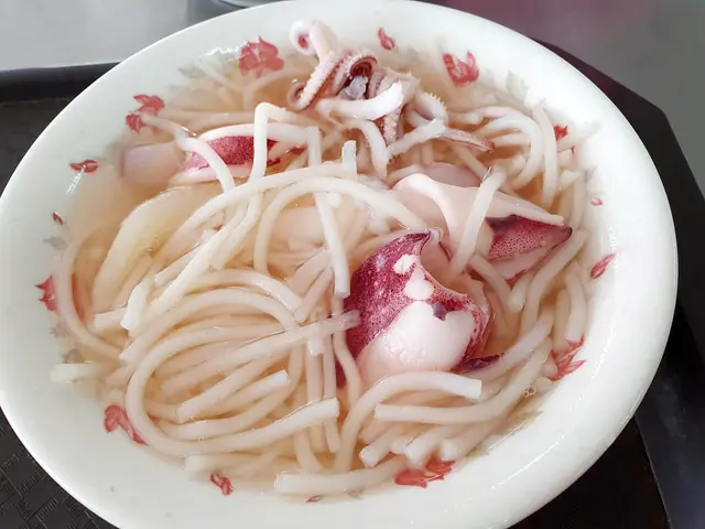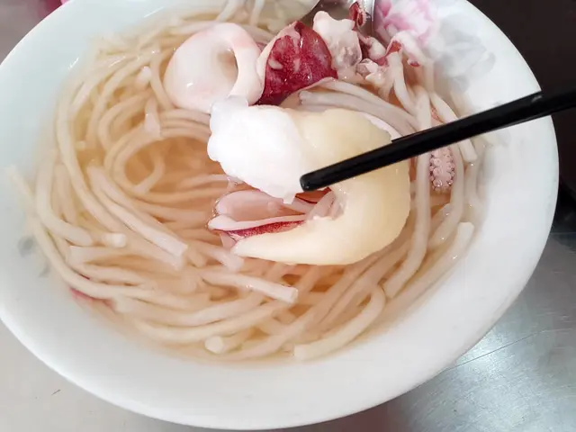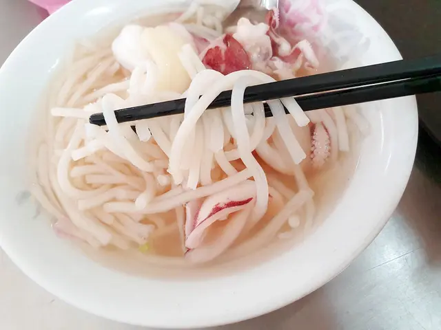 湯頭超級鮮甜,一喝就很驚艷的感覺,沒有勾芡很清爽,在炎熱的正中午吃,也不覺得膩口,第一次喝到這麼清、甜、甘的小卷湯,怪不得大家願意花很多時間排隊,就為了這一味