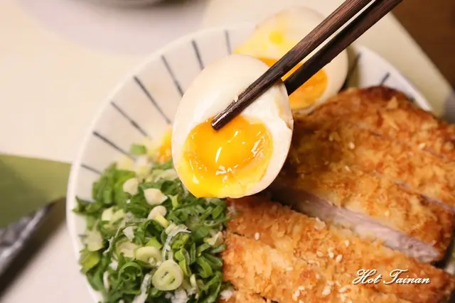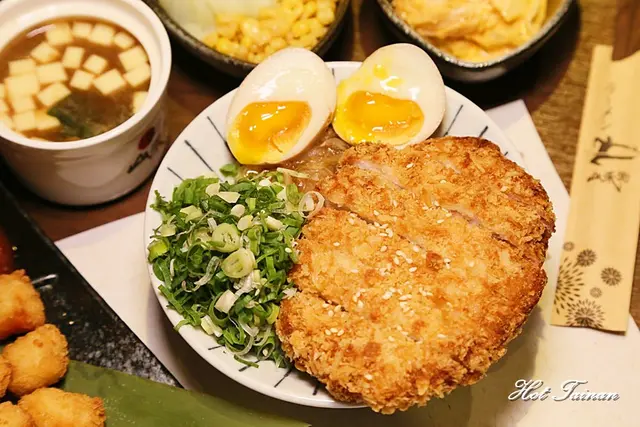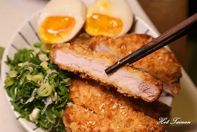 熱血選的是套餐A+88元,除了點一份餐點還可以點一份40元小菜及70元飲料,不足則補差價即可~熱血會建議大家點選套餐比較划算喔!這份豬排吃起來還真不錯,外皮酥脆麵衣又薄~豬排口感厚實一口咬下還會有肉汁噴出來,搭配下方的洋蔥更是對味,小菜給的也很夠誠意~糖心蛋有中我的口味,吃得飽更吃得巧~